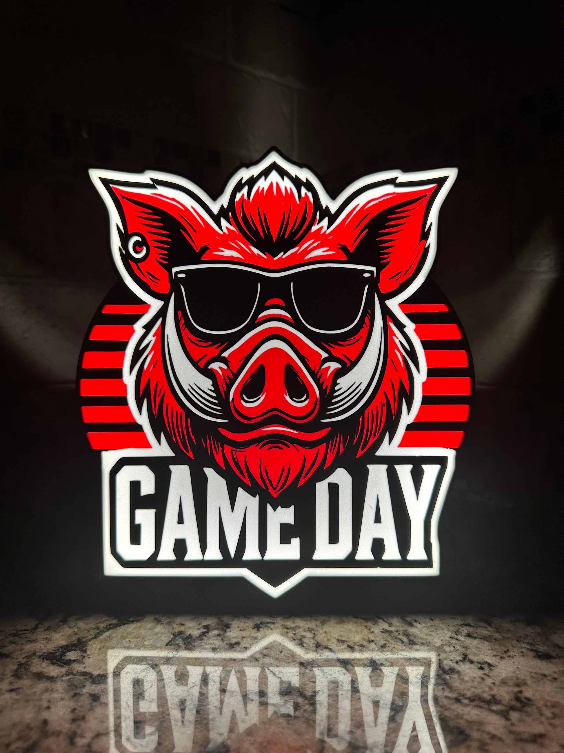 Brighten your space and show your Arkansas Razorback pride with this classic upright bulldog lightbox! Lightweight yet built to last, it stands easily on desks, bookcases, or any flat surface with included stand, and features keyhole slots for optional wall mounting without the stand. Inside, vibrant LED lights shine through, controlled by a convenient USB 2.0 5-watt power cord with an on/off switch and adjustable brightness (USB power block not included). Add a touch of timeless school spirit to any room!